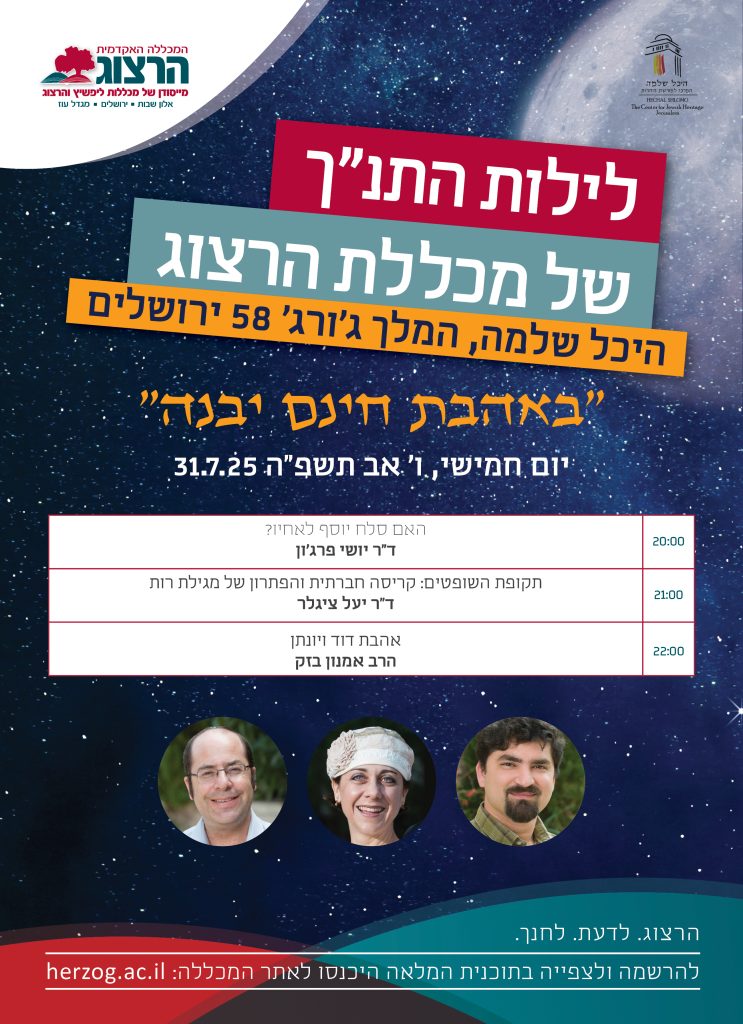לילות התנ"ך בסימן "באהבת חינם ייבנה" יום חמישי ו' באב 31.7.25