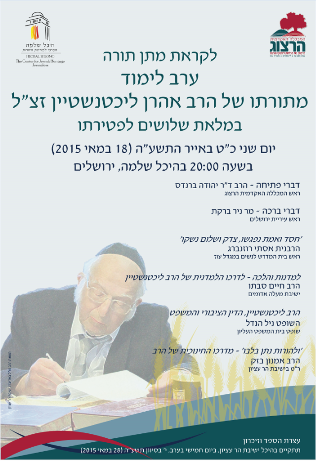 ערב לימוד מתורתו של הרב אהרן ליכטנשטיין זצ”ל