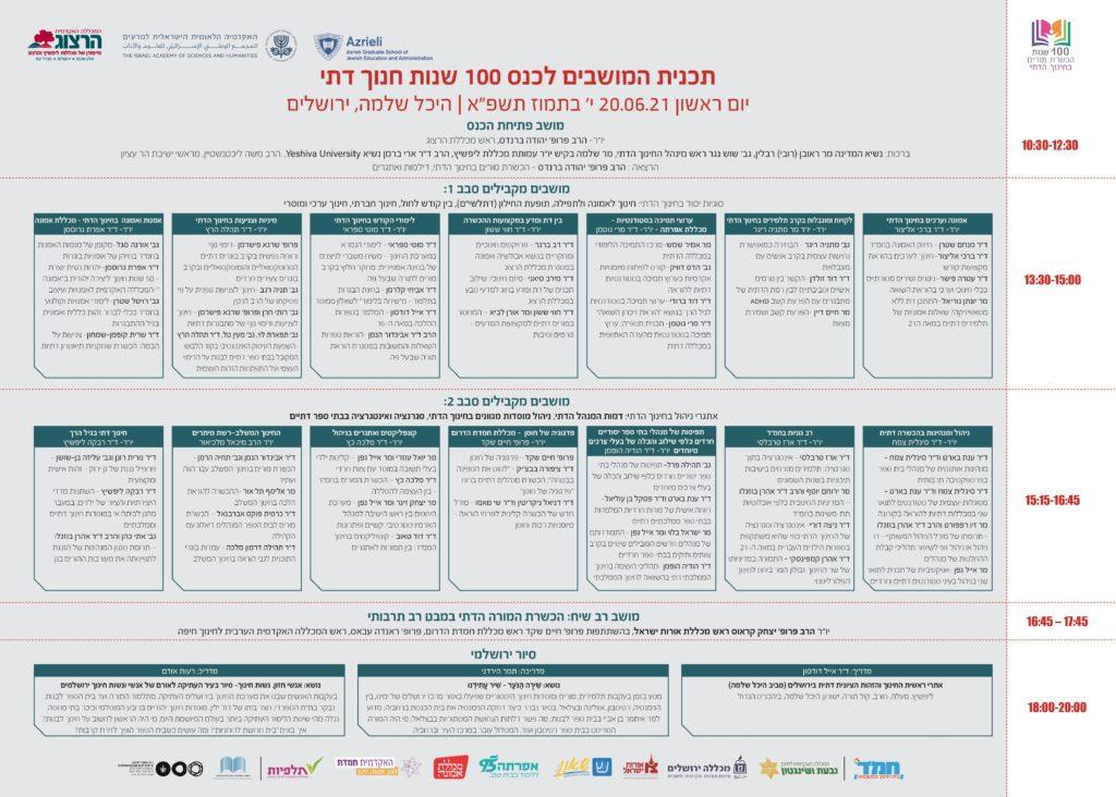 תוכניה – כנס 100 שנות הכשרת מורים בחינוך הדתי